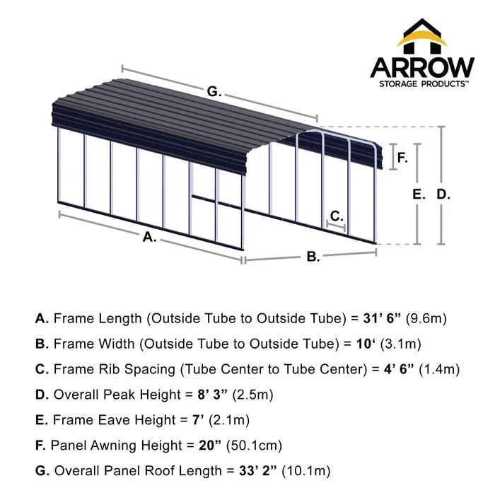 Arrow Carport, 10 Ft. X 33 Ft. X 7 Ft. Eggshell