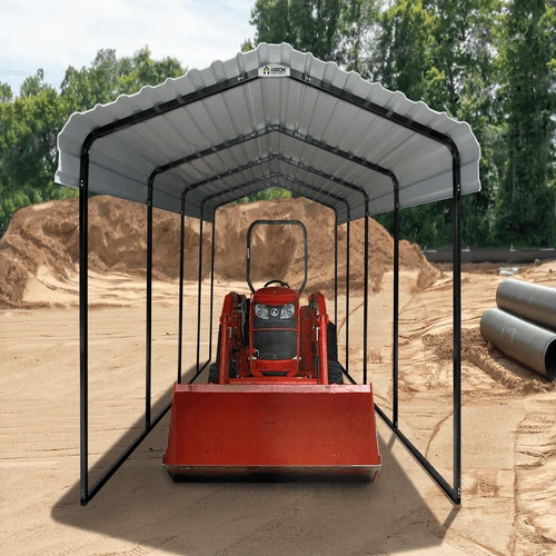 The all-steel Arrow Carport, all-weather shade and shelter solution that’s versatile and practical. Use the Carport to shade your vehicle, truck, ATV, outdoor equipment, rest areas or picnic areas. Great for storing boats, picnic and outdoor furniture and summer toys in the off-season. Each Arrow Carport is wind and snow load rated, designed to take on tough weather conditions and stand up to accumulated snowfall. Its galvanized steel roof is made to protect against corrosion, rust, and the elements and features an attractive roof with a Charcoal finish. The Carport is assembled on a tough all-steel, 2 in. tube frame, made to reinforce stability and strength in the structure, and has a powder-coated finish that resists corrosion and rust. Easy to install, the Carport comes with slip-fit connections with pilot holes and self-drilling screws making this unit easy to build straight out of the box.