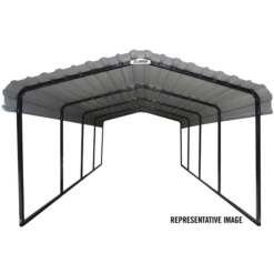 The all-steel Arrow Carport, all-weather shade and shelter solution that’s versatile and practical. Use the Carport to shade your vehicle, truck, ATV, outdoor equipment, rest areas or picnic areas. Great for storing boats, picnic and outdoor furniture and summer toys in the off-season. Each Arrow Carport is wind and snow load rated, designed to take on tough weather conditions and stand up to accumulated snowfall. Its galvanized steel roof is made to protect against corrosion, rust, and the elements and features an attractive roof with a Charcoal finish. The Carport is assembled on a tough all-steel, 2 in. tube frame, made to reinforce stability and strength in the structure, and has a powder-coated finish that resists corrosion and rust. Easy to install, the Carport comes with slip-fit connections with pilot holes and self-drilling screws making this unit easy to build straight out of the box.