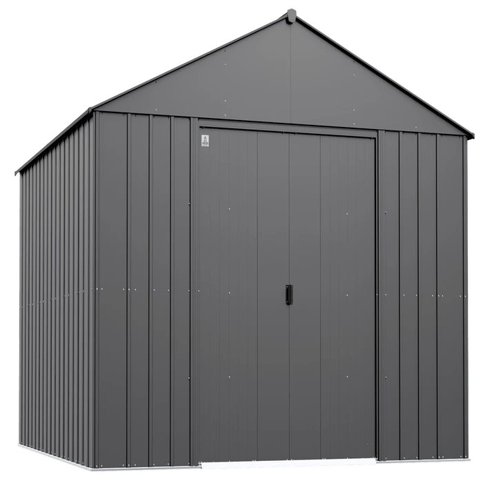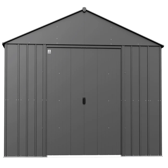 Are you looking for a practical, sturdy storage unit for your backyard? The Arrow Classic series metal storage shed is engineered to protect your landscaping equipment, tools, and gardening supplies from the elements. The shed is made of galvanized steel that’s treated to prevent rust and corrosion. It has a low gable roof that’s designed to prevent water from pooling. It has sliding doors that can be secured with a padlock. The Arrow Classic is a good-looking unit, too. The shed’s timeless vertical wall panels are finished with smooth, hard-wearing Sherwin Williams polyester paint finish, which protects it against the elements and seals the steel against rust and corrosion.
