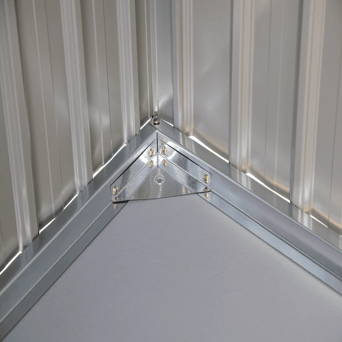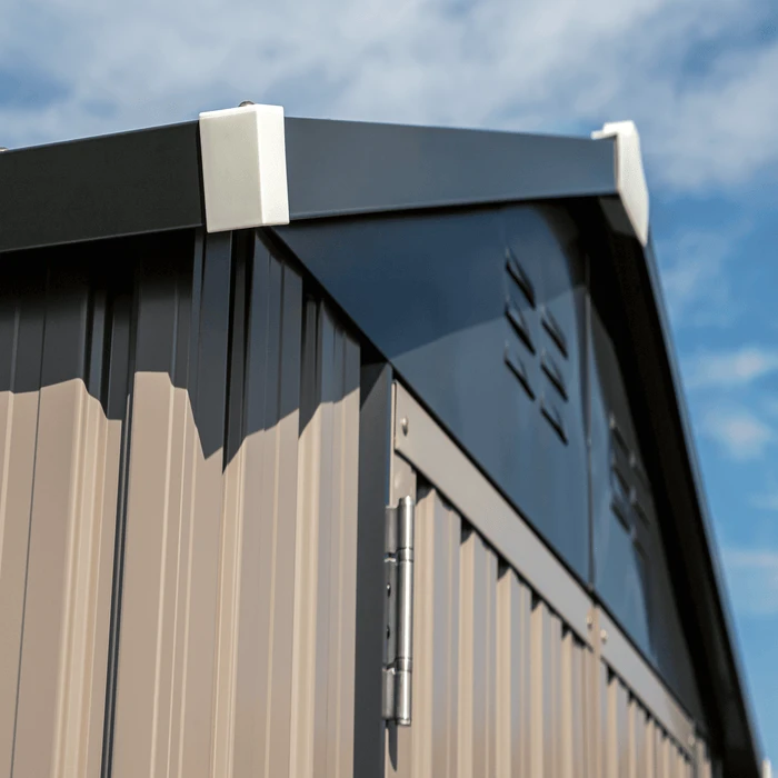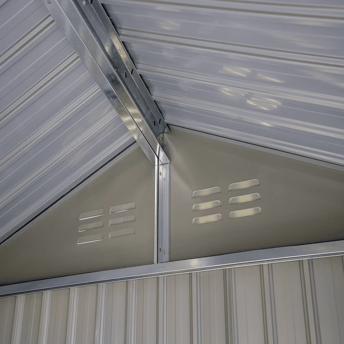 The Cover-It steel shed is a practical, attractive, and sturdy storage unit for your backyard. The shed is made of galvanized steel that’s treated to prevent rust and corrosion, and it has a sloped roof that’s designed to direct water runoff away from the door and gable vents to provide sufficient airflow. This timeless-looking shed can be locked to keep stored items safe and secure.