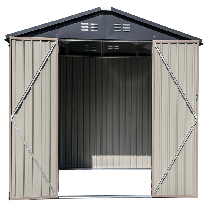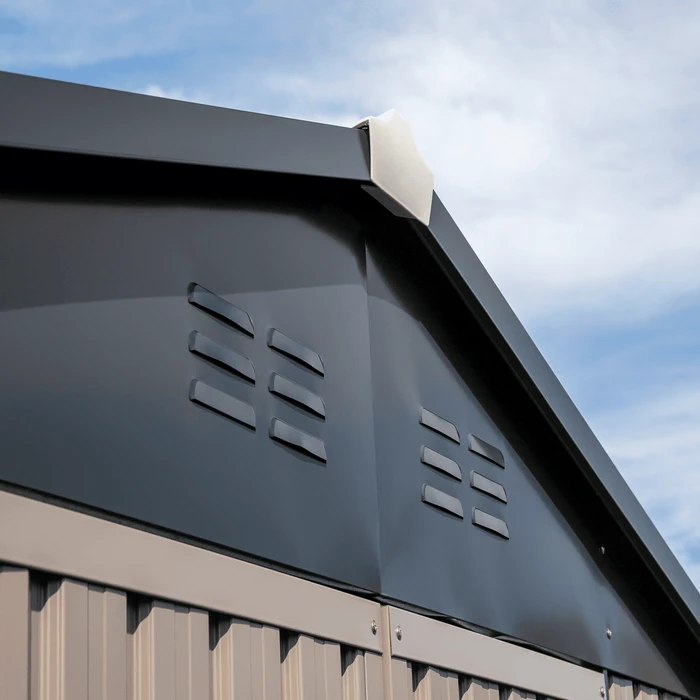 The Cover-It steel shed is a practical, attractive, and sturdy storage unit for your backyard. The shed is made of galvanized steel that’s treated to prevent rust and corrosion, and it has a sloped roof that’s designed to direct water runoff away from the entrance and gable vents to provide sufficient airflow. This timeless-looking shed can be locked to keep stored items safe and secure.