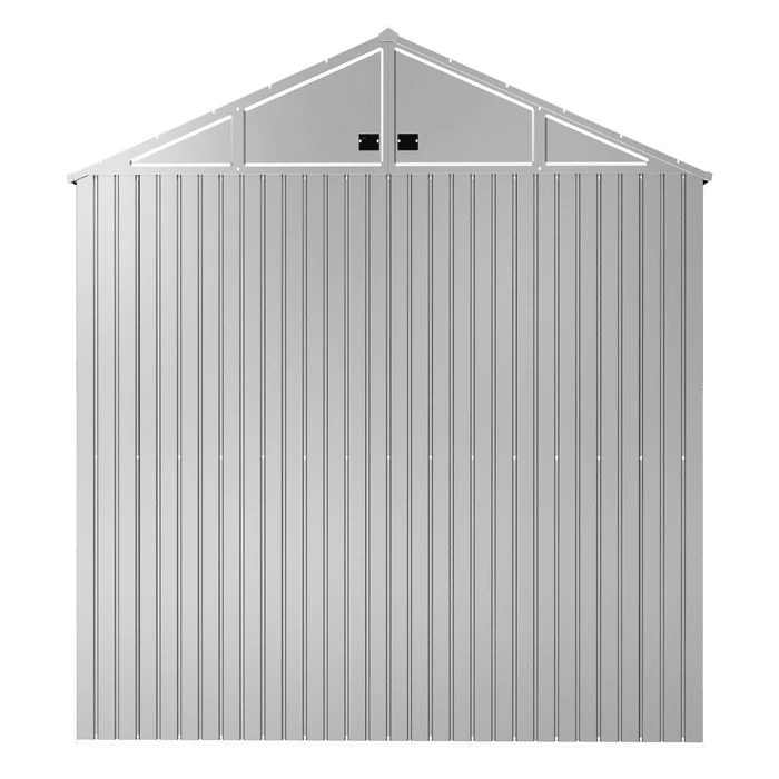 The Arrow Elite series storage shed has an attractive squared wall design and textured wrinkle paint in an anthracite finish, making it a welcome fixture in any backyard, garden or outdoor setting. Made from PermaPlate, a US Galvalume steel with an aluminum and zinc plating which is highly anti-corrosive, this steel shed is built to last! The Elite series sheds also feature a tall 72 in. wall height for added headroom, plus extra walk around space. The rigid reinforced swing open doors with brushed nickel key lock handle allows for easy access to the interior, while allowing storage against the front wall. In addition, gable vents provide increased air flow to the shed’s interior. All hardware is included for assembly.