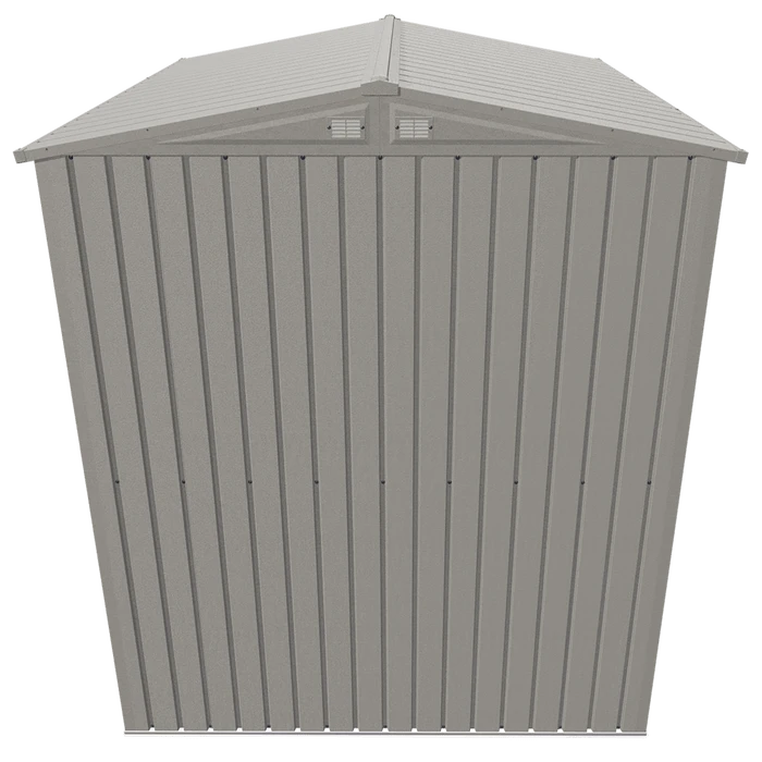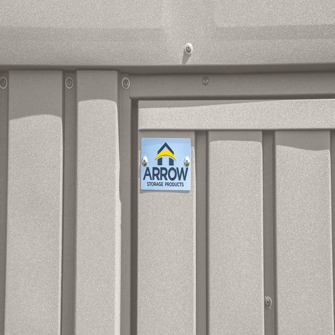 The Arrow Elite series storage shed has an attractive squared wall design and textured wrinkle paint finish, making it a welcome fixture in any backyard, garden or outdoor setting. Made from Galvalume, a steel with an aluminum and zinc plating which is highly anti-corrosive, this steel shed is built to last! The Elite series sheds also feature a tall 72 in. wall height and high gable roof for added headroom, plus extra walk around space. The rigid reinforced swing open doors with brushed nickel key lock handle allows for easy access to the interior, while allowing storage against the front wall. In addition, gable vents provide increased air flow to the shed’s interior. All hardware is included for assembly.