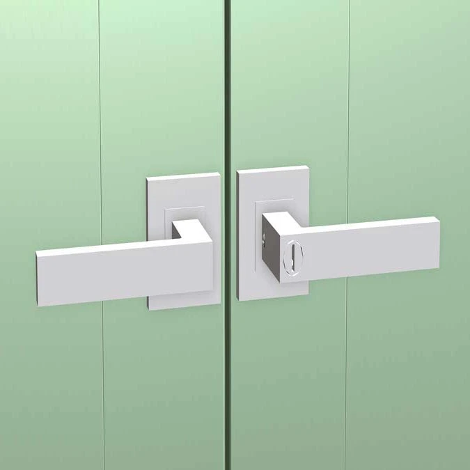 - Swing doors increase usable storage space, and includes integrated keyed brushed metal locking handles for added security and a sophisticated look.