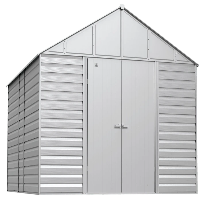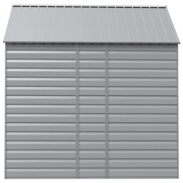The Arrow Select line of strong, sturdy steel storage sheds is a pleasant addition to your backyard Made with galvanized steel that is treated to provide long-term protection against corrosion and rust, Arrow Select sheds are engineered to protect your stored items from the elements Inside, the 71 in walls provide extra headroom, vertical storage space, and added entryway clearance That makes it great for storing ladders, rakes, pole saws, and anything you want to pile high The Arrow Select line also has a high gable roof to prevent pooling of rainwater and debris and locking door handles for security It also has a smooth, strong Sherwin-Williams paint finish that protects it from the elements and gives the steel extra protection from rust and corrosion