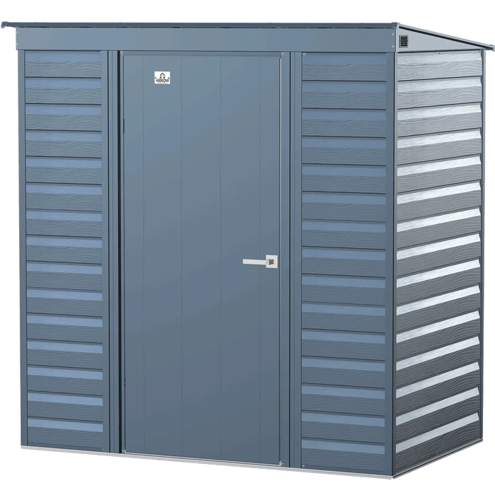 The Arrow Select line of strong, sturdy steel storage sheds is a pleasant addition to your backyard. Made with galvanized steel that is treated to provide long-term protection against corrosion and rust, Arrow Select sheds are engineered to protect your stored items from the elements. Inside, the 71 in. walls provide extra headroom, vertical storage space, and added entryway clearance. That makes it great for storing ladders, rakes, pole saws, and anything you want to pile high. The Arrow Select line also has a high gable roof to prevent pooling of rainwater and debris, built-in air vents for better circulation, and locking door handles for security. It also has a smooth, strong Sherwin-Williams® paint finish that protects it from the elements and gives the steel extra protection from rust and corrosion.