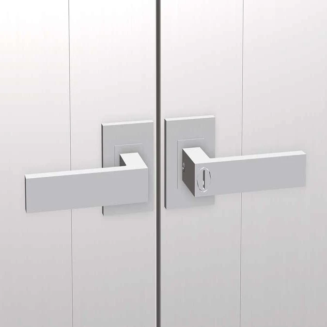 - Swing doors increase usable storage space, and includes integrated keyed brushed metal locking handles for added security and a sophisticated look.