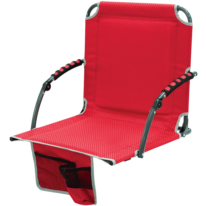 Looking for wider and taller seating you can take to the big game? The Bleacher Boss Pal Stadium Seat is wider and taller than other stadium seats. This chair features a cup holder and cell phone pouch. The padded two-toned arms are stylish and comfortable. This portable stadium seat is perfect for any outdoor game or event. Available in 5 textured team sports color fabrics.