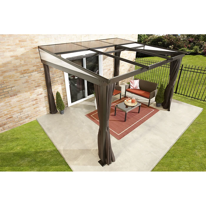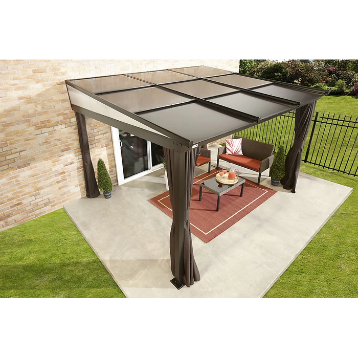 Budapest Wall-Mounted Hardtop Gazebo, 10 Ft. X 12 Ft. Dark Brown