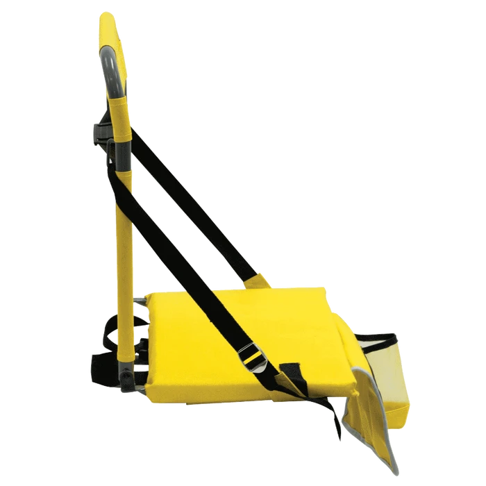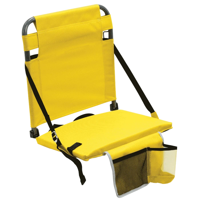 The Bleacher Boss Bud Stadium Seat works well with any stadium bench. Enjoy long-lasting comfort with this stadium seat with a seat back height of 17.5 inches. The heavy duty adjustable strap and buckle provide strength and stability. This chair features a cup holder and pouch for your cell phone or any other small items. Folds flat and has a padded shoulder strap for easy portability.