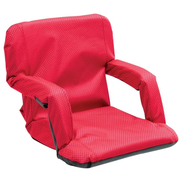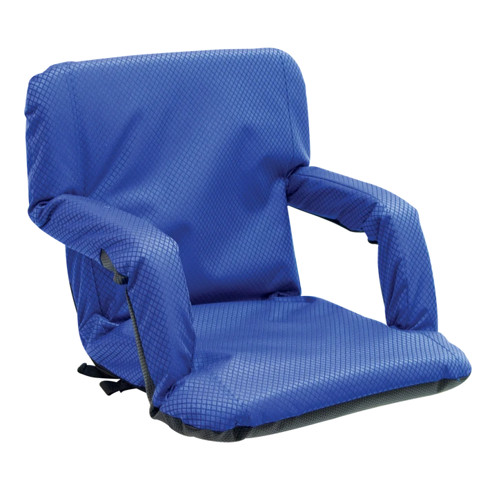 The Go Anywear Stadium Seat is a versatile, portable chair that has backpack straps so that you can wear to the stadium, the beach, or the park. It is extra padded for extra comfort, and the seat back reclines. It features backpack straps for increased portability and is lightweight and easy to carry anywhere. The Go Anywear Stadium Seat folds flat for easy carrying and storage and is fully padded. Arms fold down for wider seat width.