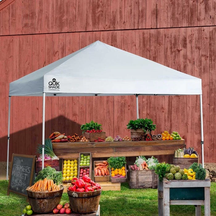 The Quik Shade C100 offers top-quality, reliable shade that’s perfect for farmer’s markets, outdoor receptions, sporting events, and much more. This 10 x 10 straight leg canopy offers up to 100 sq. feet of shade for 8 to 12 people to comfortably enjoy. With 3 height positions, a wall panel for added sun protection and privacy and a heavy-duty roller bag, this portable and easy-to-assemble shade solution can be used virtually anywhere.