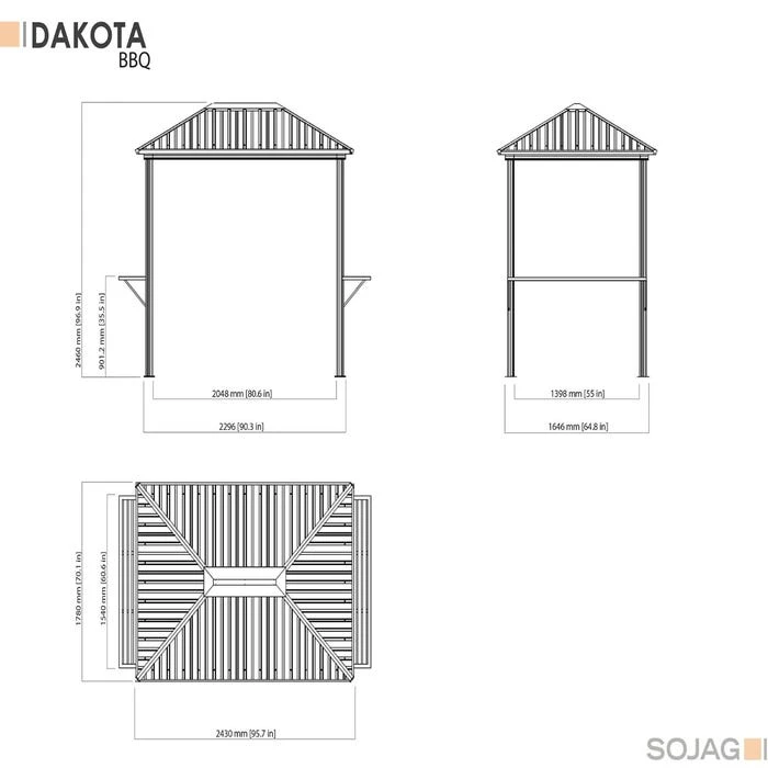 No matter the season, it’s always time for a cookout when you own a SOJAG Dakota Grill Gazebo. The Dakota’s galvanized steel roof will keep your grill from premature rusting, and protect you from the sun’s harmful UV rays. The open-air structure lets you take care of your barbecue while you entertain your guests. The Dakota Grill Gazebo even has two handy shelves that can serve multiple purposes. Use them to prep your feast outdoors instead of it a hot kitchen, to hold condiments and utensils, or to hold your drink while you man the grill. The Dakota Grill Gazebo is a great-looking addition to any backyard space, and is designed to protect you and your grill from the weather for years to come.