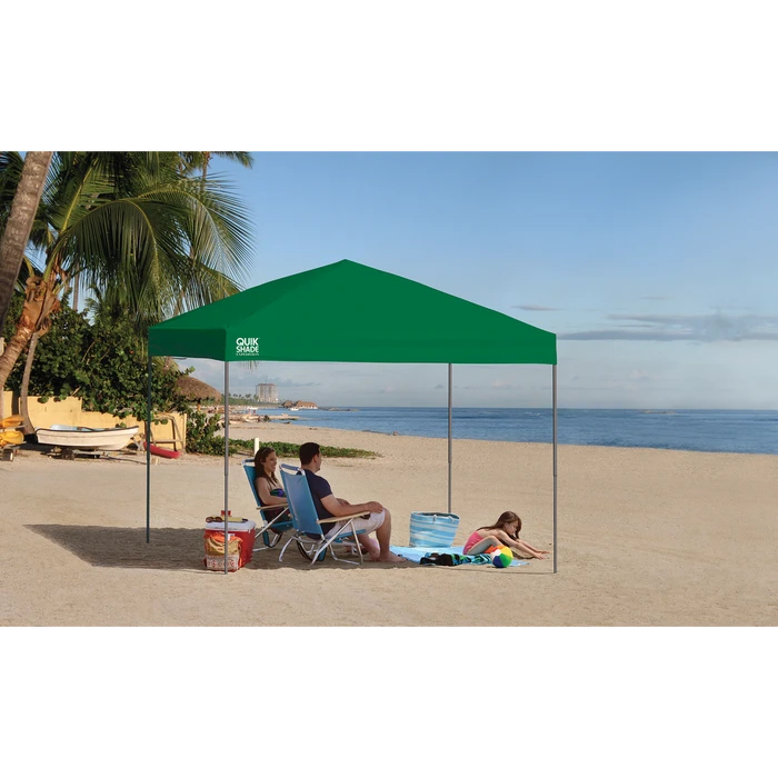 Quik Shade’s 10 x 10 ft. straight leg Expedition canopy provides up to 100 sq. feet of shade under an attractive straight leg canopy. This durable canopy features patented overlapping eaves and thru-bolt reinforced assembly to maintain the structural integrity of your shade. The 150D polyester top with Aluminex gives you 99% UV protection for quality shade at farmer’s markets, sports events, and much more.