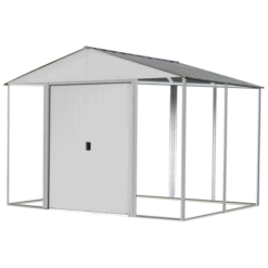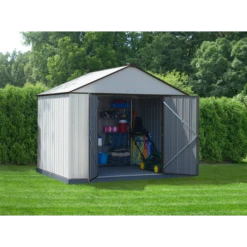 EZEE Shed® Steel Storage Shed, 10 Ft. X 8 Ft. Cream With Charcoal Trim