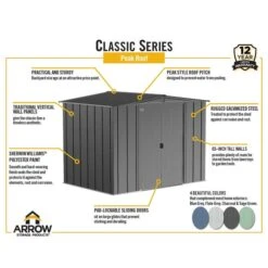 Arrow Classic Steel Storage Shed, 8 Ft. X 8 Ft., Charcoal