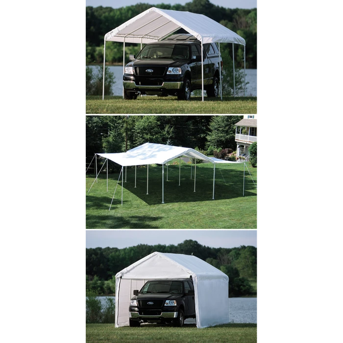 The ShelterLogic Max AP 3-in-1 Canopy Pack is great for any seasonal shade occasion including backyard, events, camping, commercial job sites, picnic areas, and much more. Extension Kit extends shade coverage from an 10 ft x 20 ft canopy to a 24 ft x 20 ft. event tent. Sets up in less than two hours with only two people.
