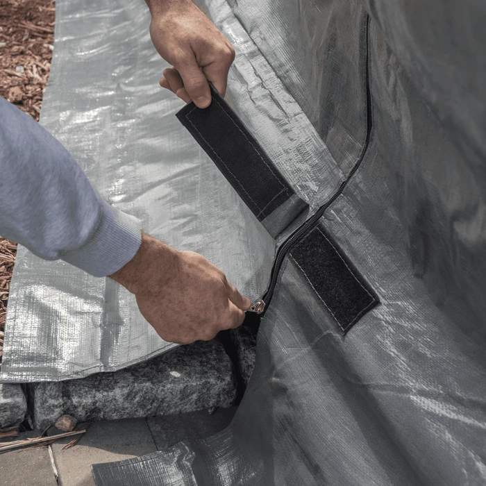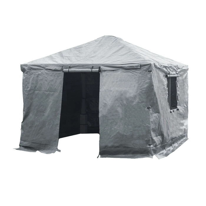 This winter cover is the perfect accessory to protect your Sojag sun shelter. It is designed for Sojag’s tallest gazebos. It is made of durable polyethylene and allows you to convert your sun shelter into a practical storage space for your BBQ, patio furniture, etc. Not only does it instantly convert your sun shelter into a backyard shed but it enables you to increase the life of your sun shelter by protecting the roof panels and frame from the elements. Compatible with Sojag’s large 12 x 12 ft gazebos, which include the following models: Nanda, Lena, Lazio, Valencia, and South Beach.